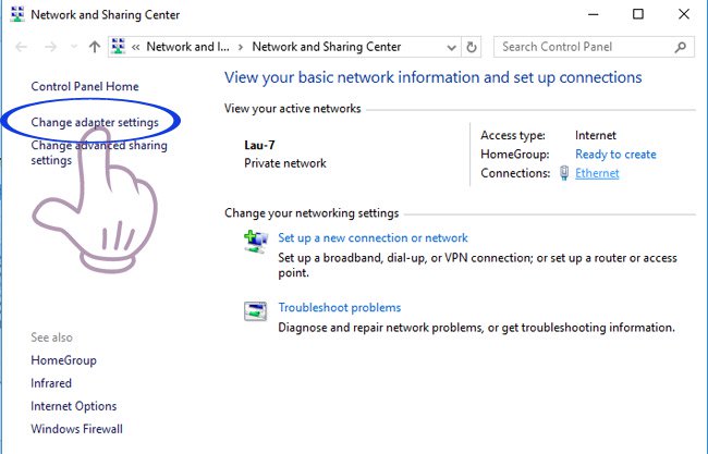 Chọn ngay mục “Change apdater settings“